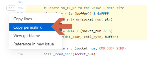 방법은 코드를 보다가 필요한 부분은 라인번호를 클릭하면 노란색으로 변경이 되면서 ... 메뉴를 누를 수 있는 버튼 같은 것이 나온다.