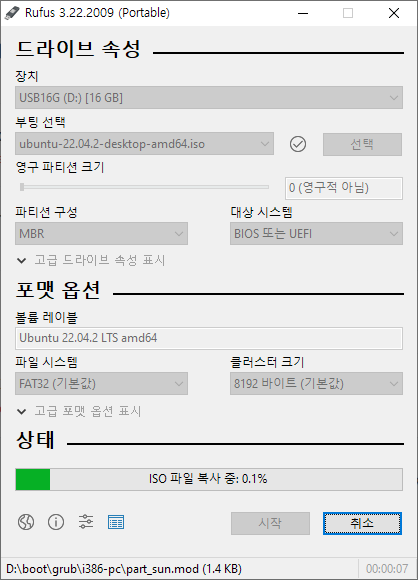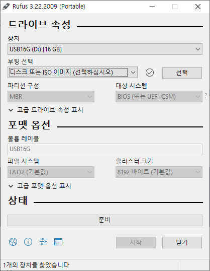 - Rufus 3.22 포터블 (1.3 MB)