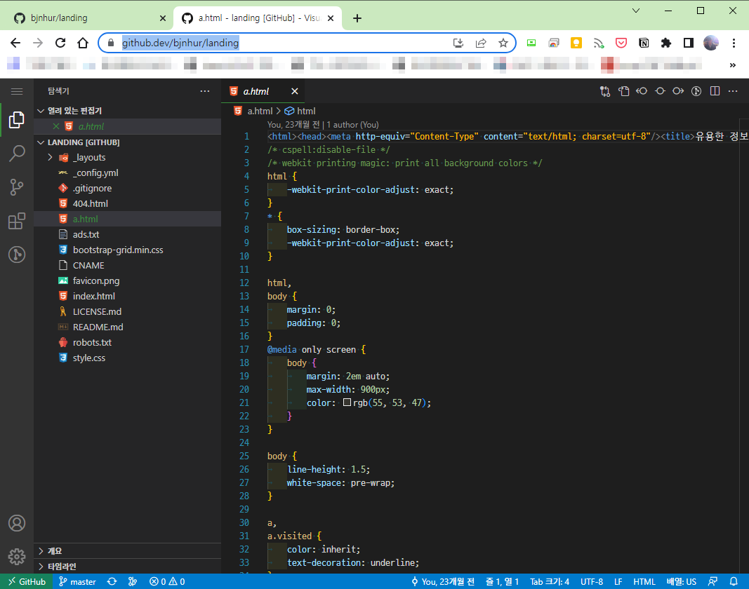 이건 머지, github.com 에서 github.dev 로 변경해 버리면 그냥 그 Repo 가 온라인 에디팅 가능한 VSCode 환경으로 변경된다.