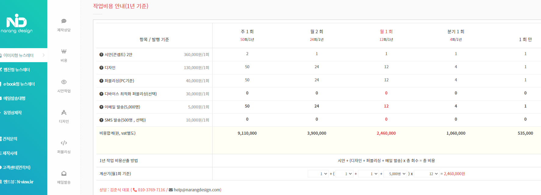 맨날 궁금한데, 온라인 견적서는 잘 안나와 있던데, 뉴스레터를 발행하려면 보통 어느 정도일까?