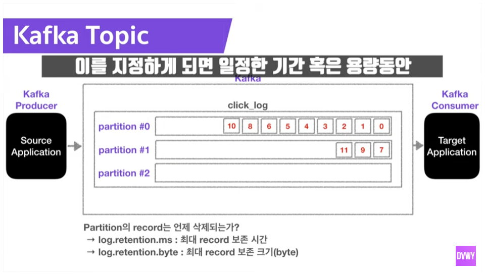 토픽이라는 하드디스크에 파티션이 있는 느낌이다. 하나의 토픽에 여러개의 파티션이 있을 수 있다.