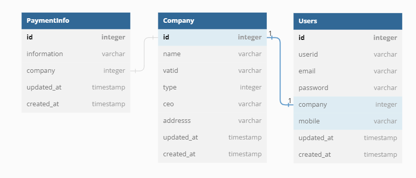 Ref: "PaymentInfo"."company" - "Company"."id"