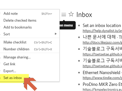 Dynalist clipper browser extension (Dynalist Companion Clipper) 정말 편리하다. 내 노트중에 하나를 Inbox로 지정해두고, Dynalist Companion Clipper 익스텐션(https://chrome.google.com/webstore/detail/dynalist-companion-clippe/ilcnkabiejjaijmenfmfobnkplflaglb)설치하고, 간단하게 저장하고 싶은 페이지에서 오른쪽 마우스 버튼 클릭하고, 클립하면 끝~~ 그럼 지정한 Inbox에 간단하게 링크정보가 리스트로 나타난다. 북마크 관리에 완전 최고!!