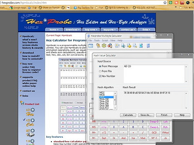 hex code 입력값으로 MD5 hash 결과 보기..왠만큼 찾아보면 문자열 가지고 하는 것은 많이 찾을 수 있는데 hex code 입력으로 하는 것을 조금 더 뒤져야 한다.좋은 툴이다. 간단하게 며칠 쓸 수는 있다. 소개페이지 : http://hexprobe.com/hpmbcalc/index.htm툴을 띠우고 Tools > Hash Value.... 누르면MD5로 Encryption 할 수 있다. 그림 참고 아래는 "MD5 hex" 키워드로 flikr 검색시 나온그림..시계가 이~뻐~ Wall Clock Prototype by briansuda
